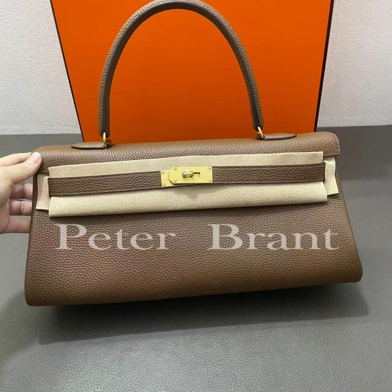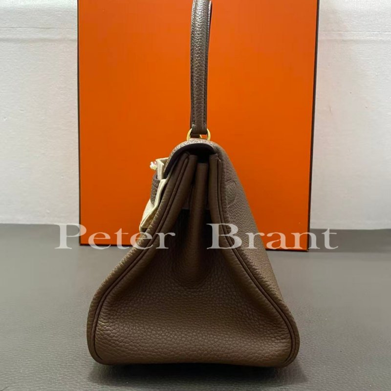 / Hermès Kelly Shoulder Bag in Togo Leather, Etoupe, Gold Hardware
