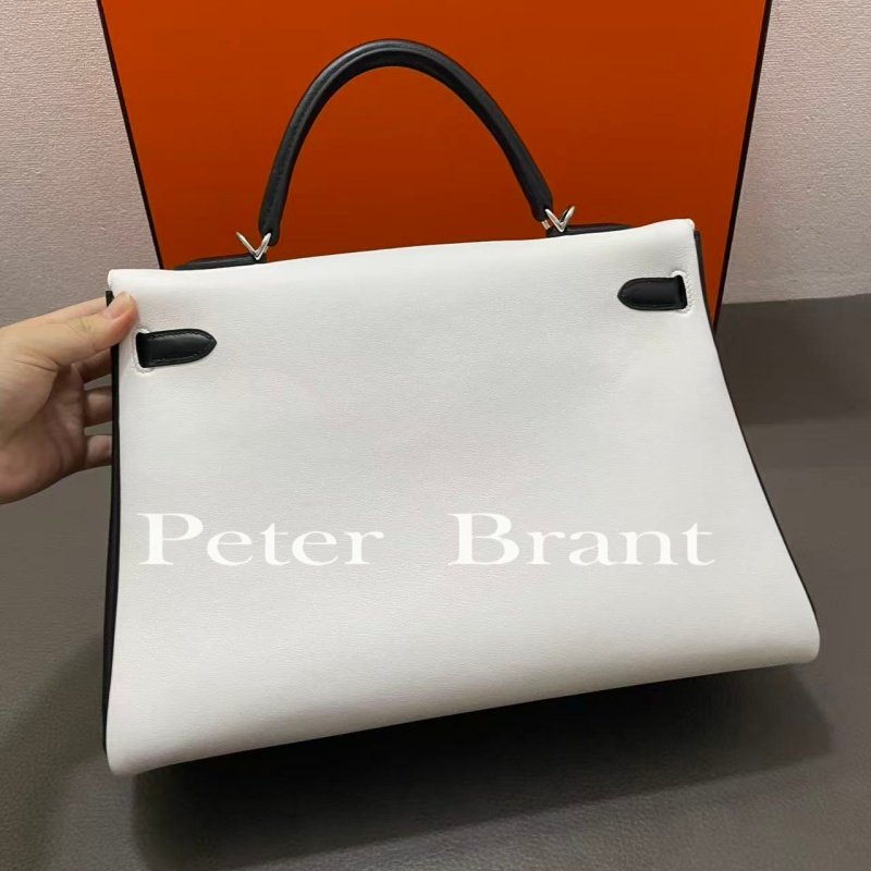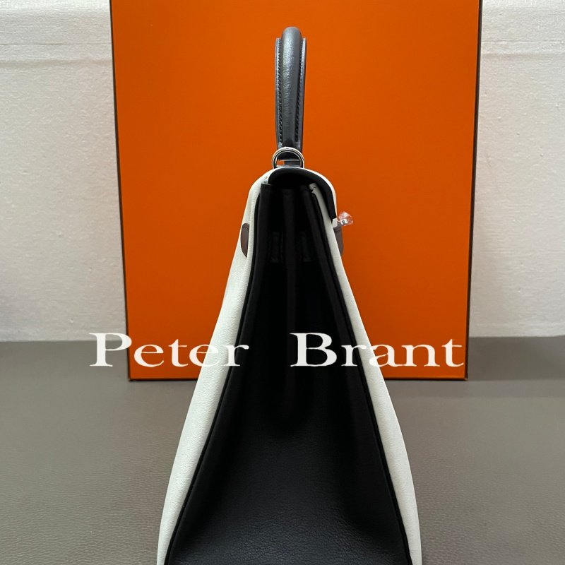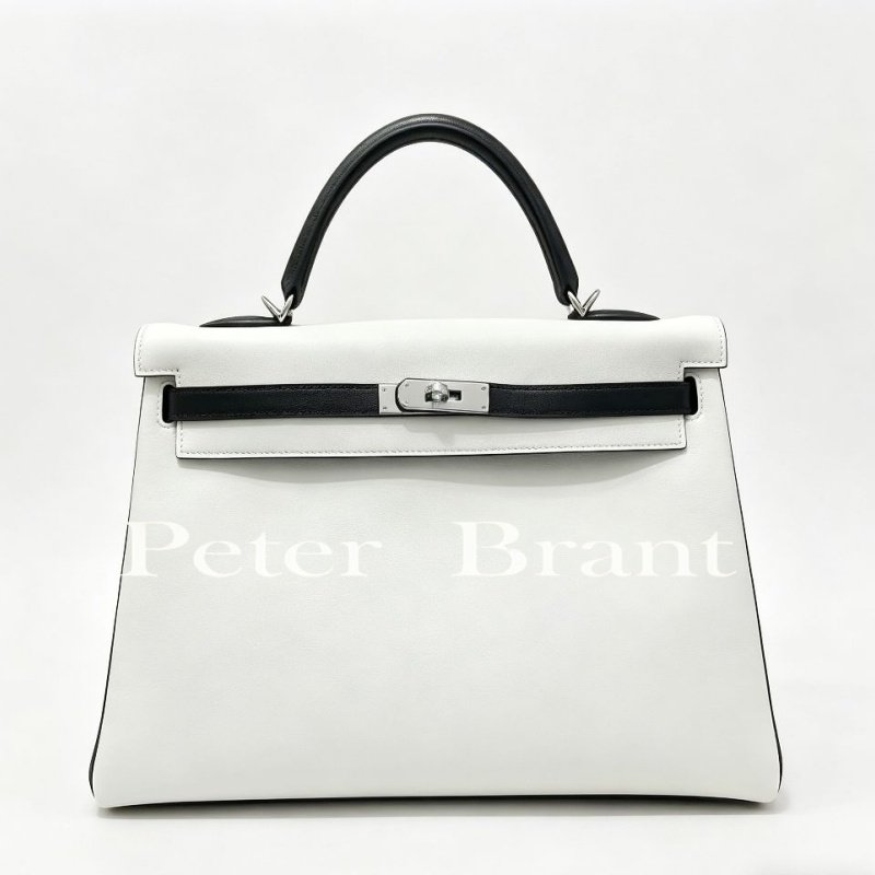 Hermès Kelly 32 Two-Tone White & Black Swift Leather Handbag with Palladium Hardware