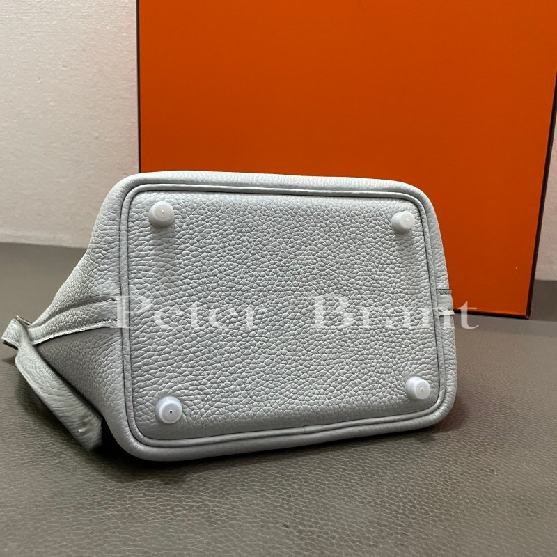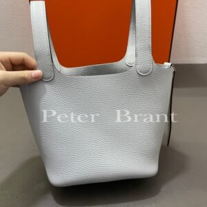 / Authentic Hermes Picotin Lock 18 White Clemence Leather Tote Bag