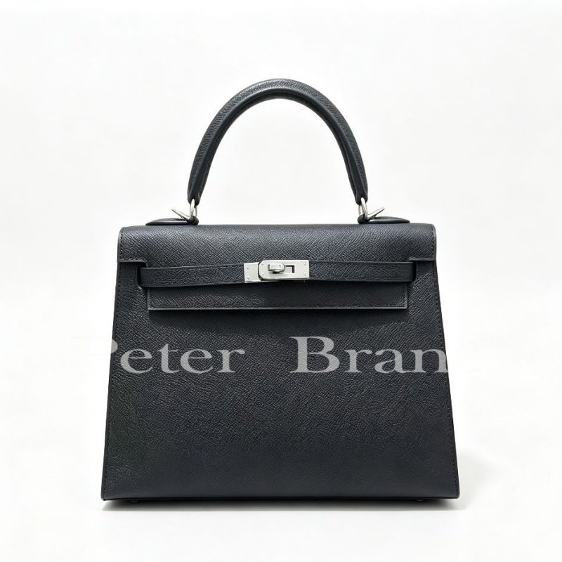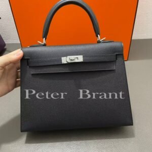 Authentic Hermes Kelly 25cm Black Epsom Leather with Palladium Hardware