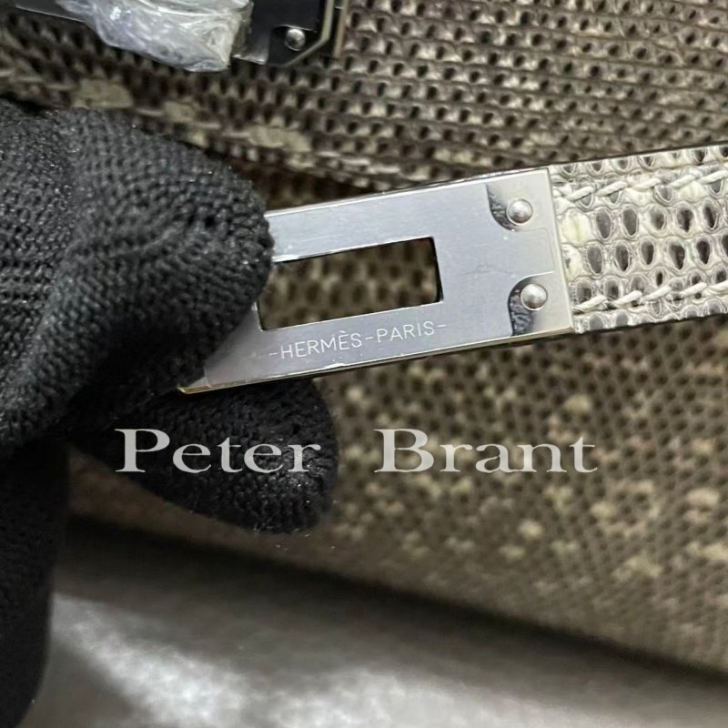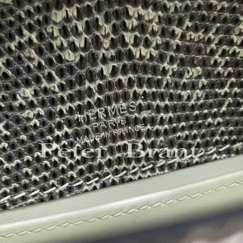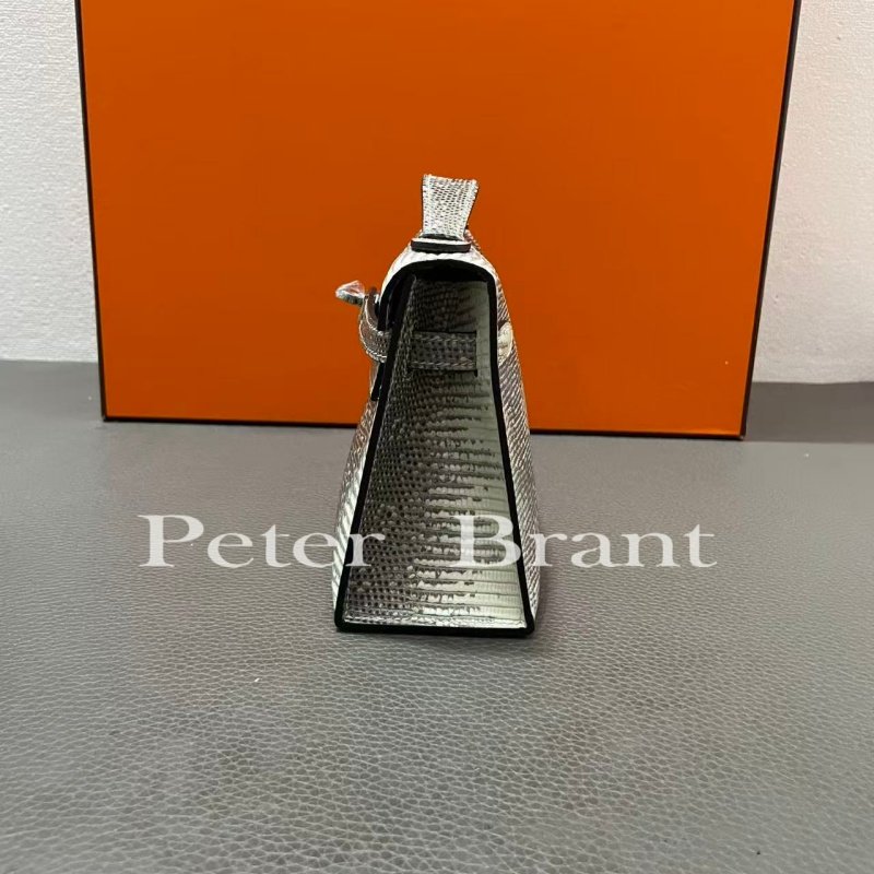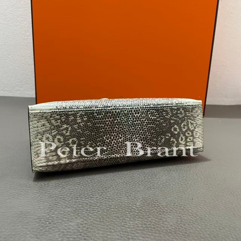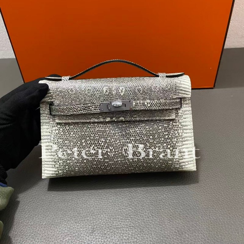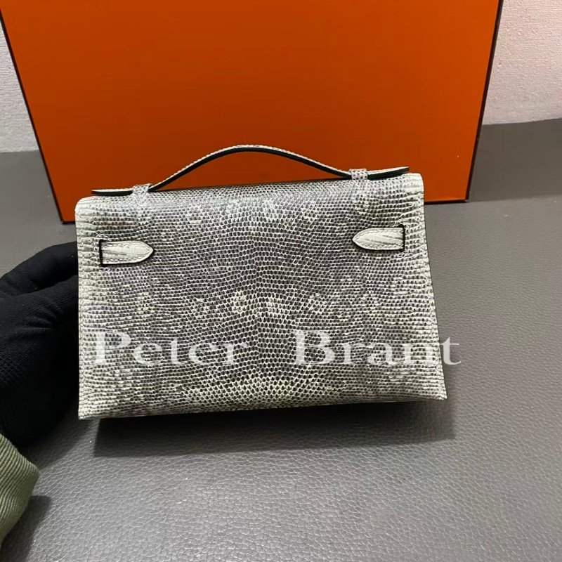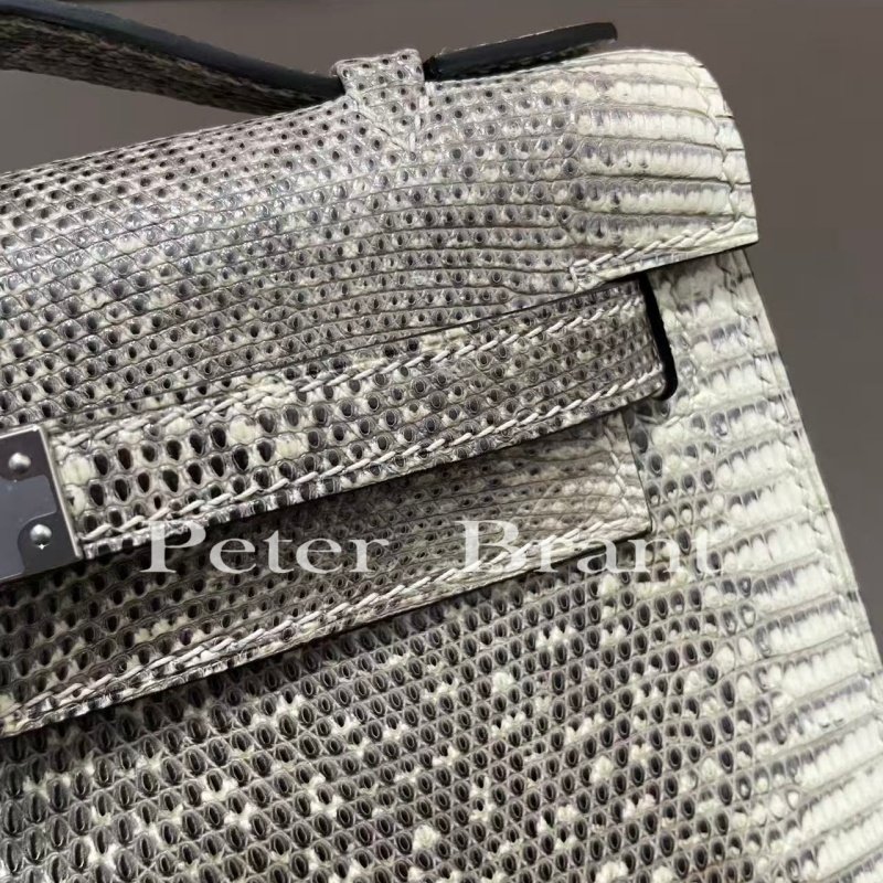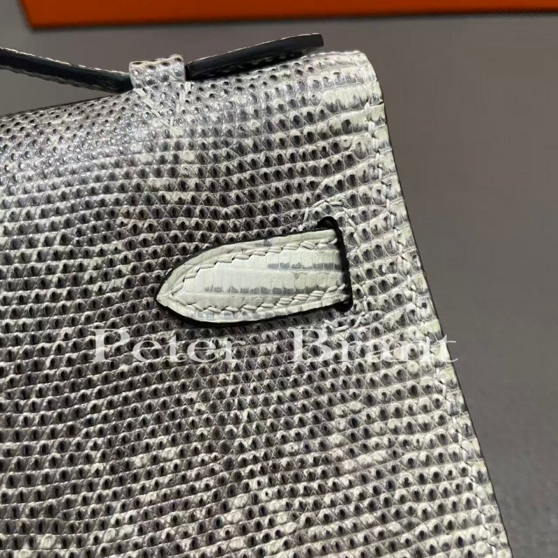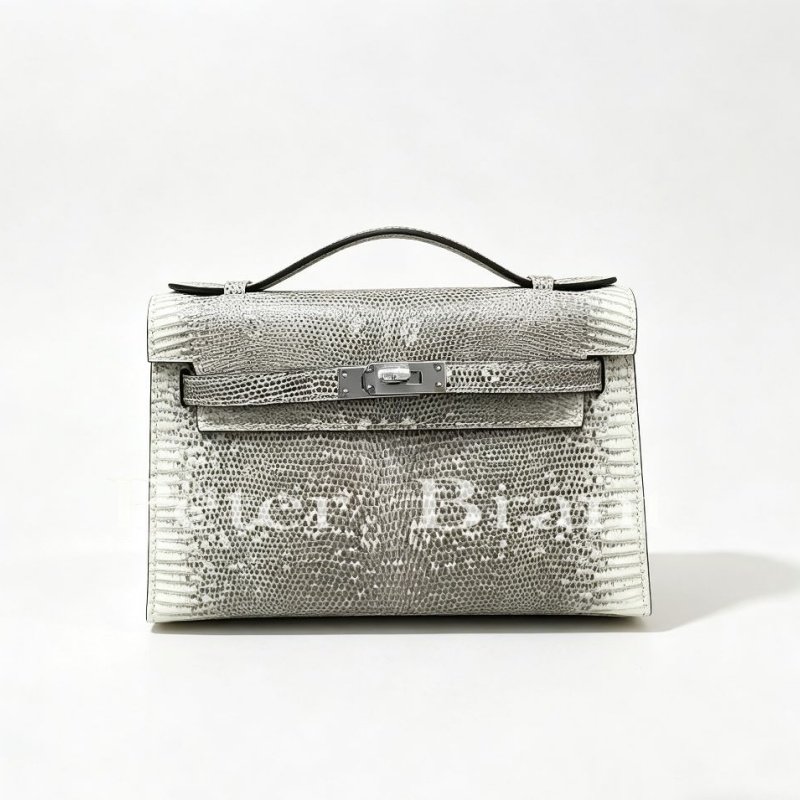 / Hermès Mini Kelly Pochette Handbag – Natural Lizard Leather, Silver Palladium Hardware, Top Handle