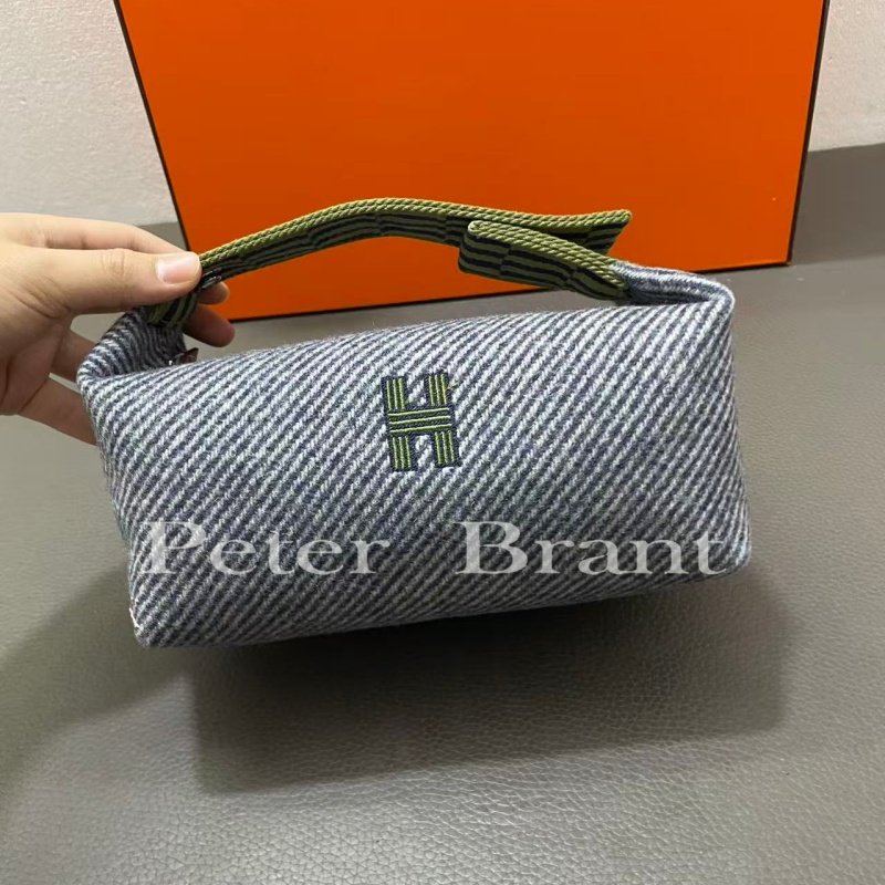 成为第一个“Hermès H Logo Wool Tote Bag – Blue Herringbone, Green Embroidered Detail, Top Handle” 的评价者
