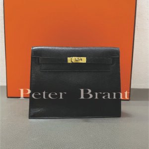 / Hermès Kelly Clutch Black Lizard Gold HW