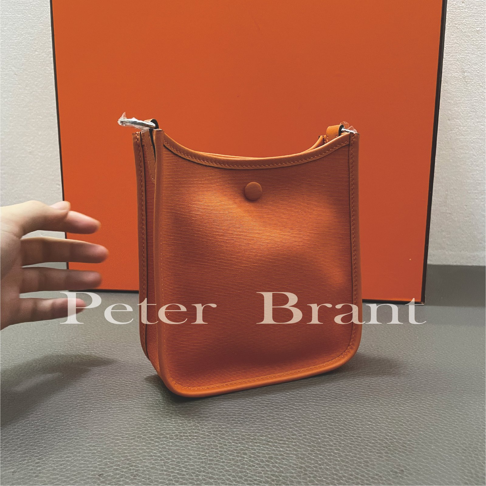 Hermès Mini Evelyn 16 Orange Canvas Crossbody Bag with Perforated H Logo - Authentic Luxury Designer Handbag 数量