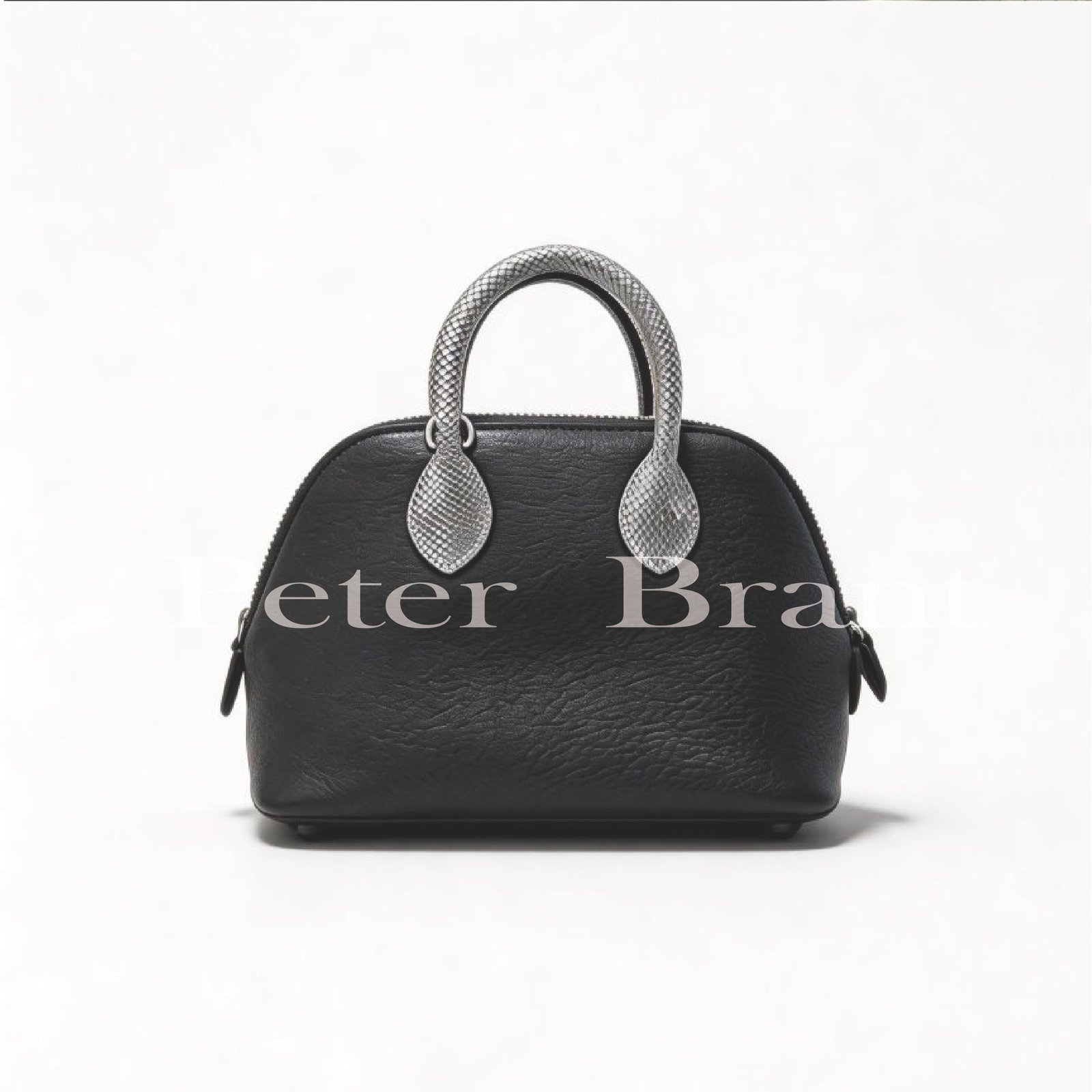 / Hermès Bolide Mini, Black Leather with Lizard Accent Handle, Silver Hardware, Designer Handbag