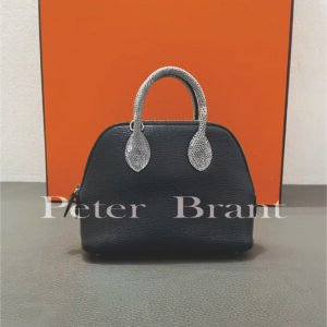 Hermès Bolide Mini, Black Leather with Lizard Accent Handle, Silver Hardware, Designer Handbag